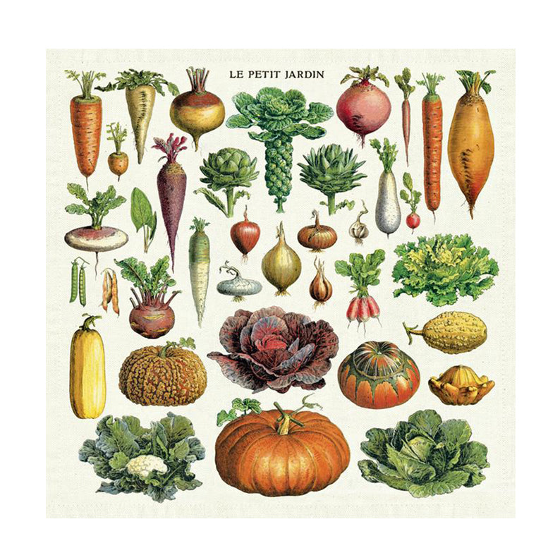4 stofservietter med motiver af Jardin, Havegrøntsager.