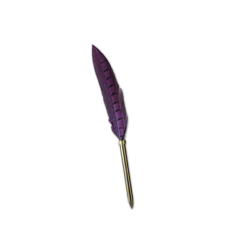 Purpurfärgad fjäder toppar denna härliga penna. Lite lyxig, lite flärdfull. Vacker även när den ligger framme.