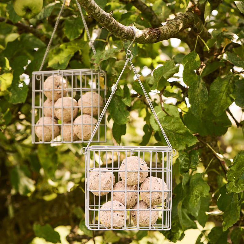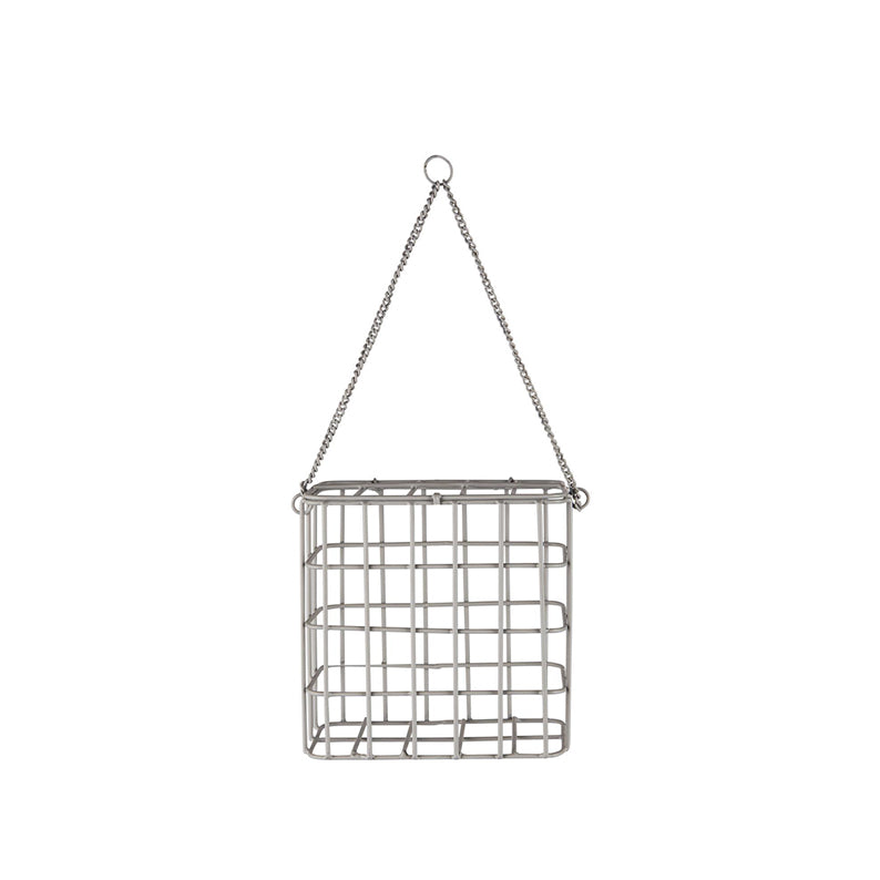 Fågelmatarhängare i metall med avlång form och kedja för enkel upphängning (totalhöjd 39,5 cm). Gallerdesignen ger fåglarna enkel tillgång till fågelfröna och säkerställer god luftcirkulation, vilket håller maten torr och färsk längre. Ett snyggt och praktiskt sätt att locka till sig trädgårdsfåglar.