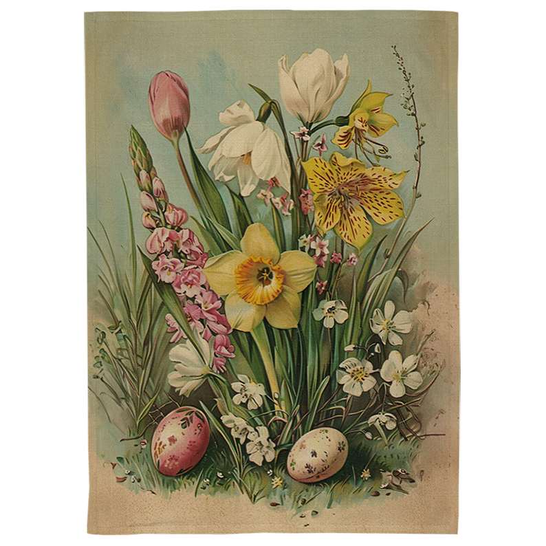En kökshandduk. Tryck på framsidan med ett vintage motiv.