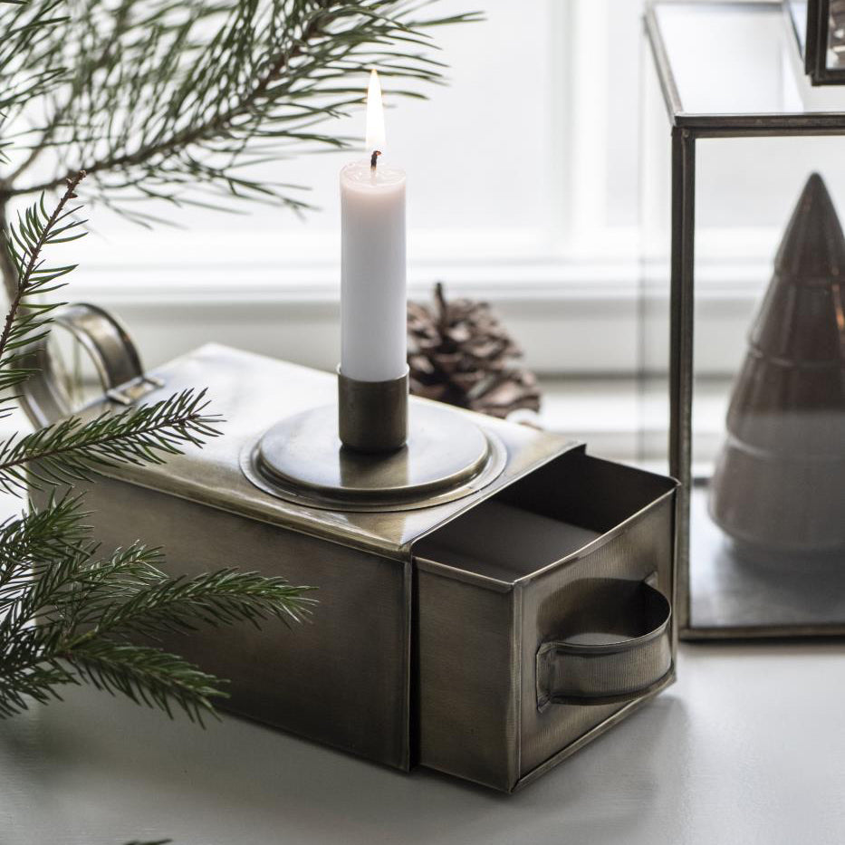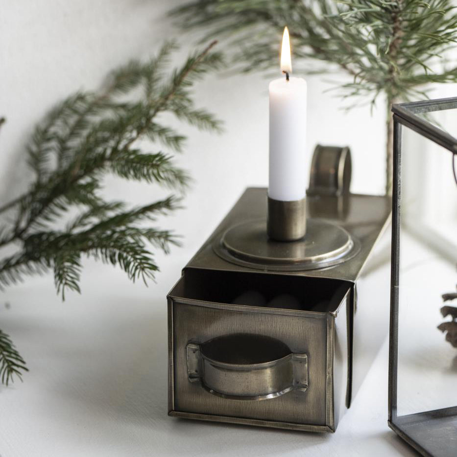 Ljusstake med låda och handtag