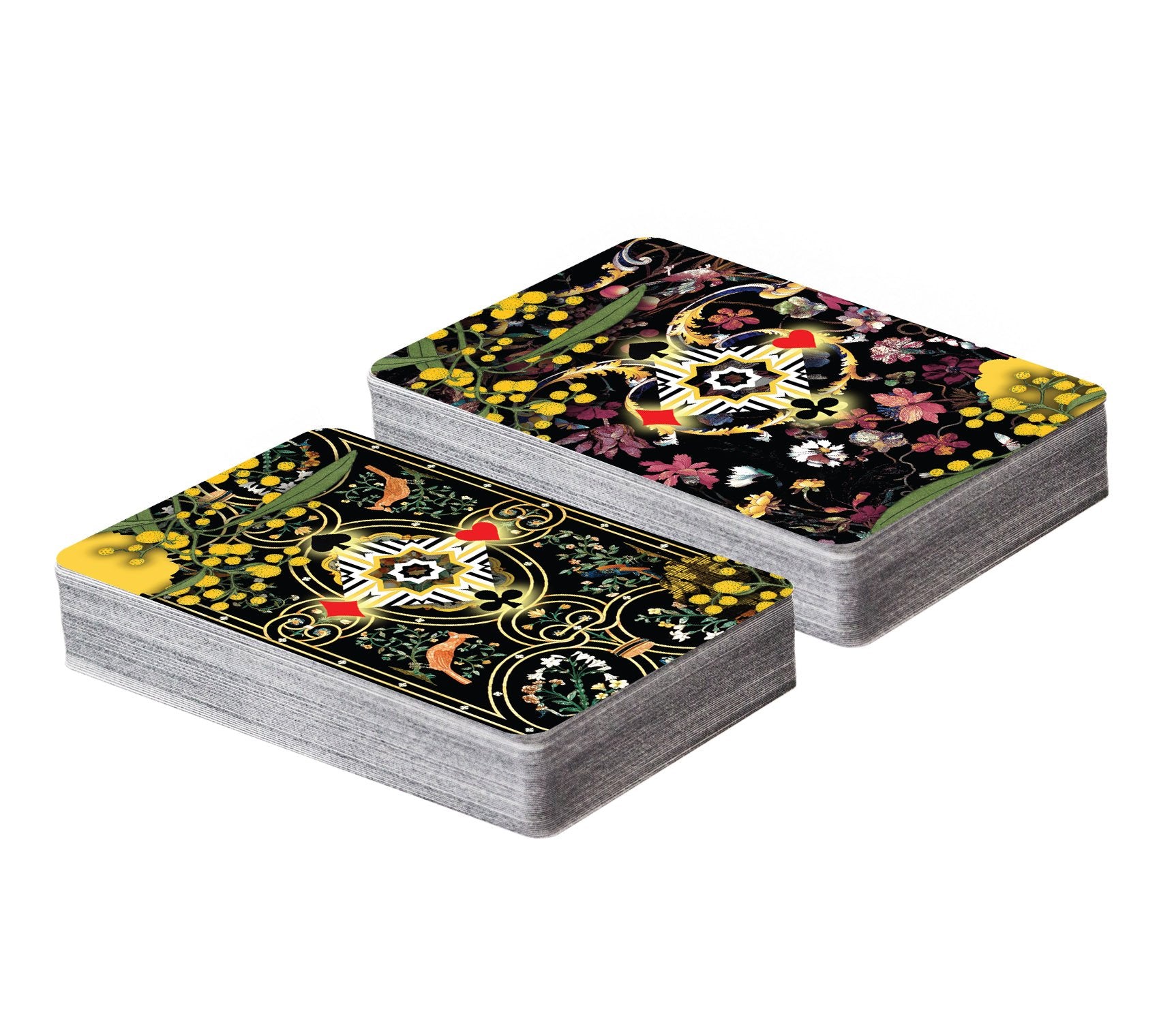 Två kortlekar spelkort med konst som visar atmosfären i franska gamla spelhus. Varje kort har sin egen unika design från Christian Lacroix värld, och varje kortlek har sin egen kartong.