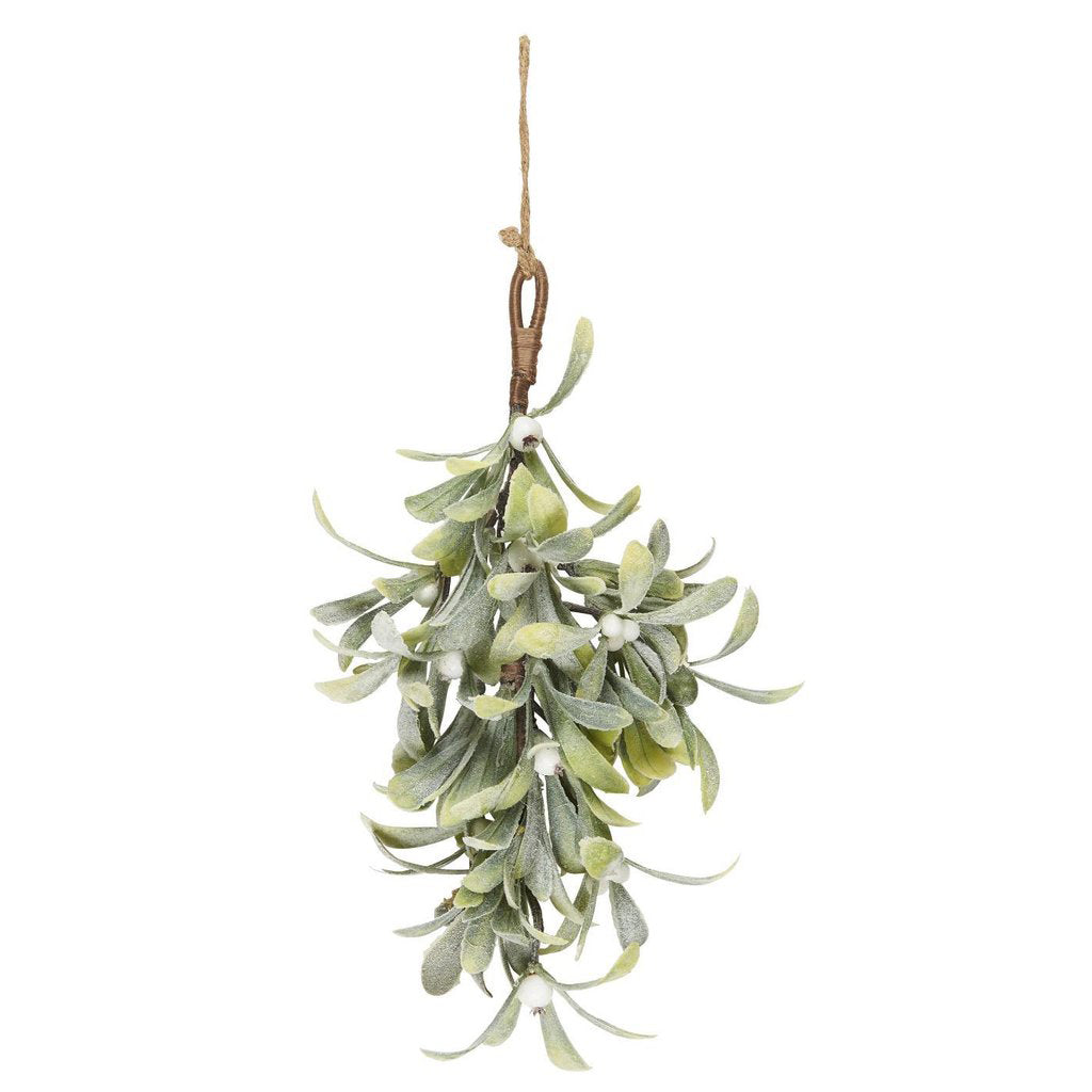 En lite större mistel kvist som är lätt att hänga upp. Kvisten har frostade blad och vita bär.