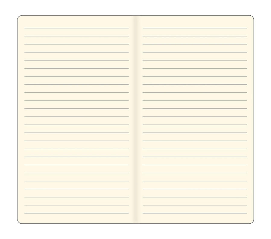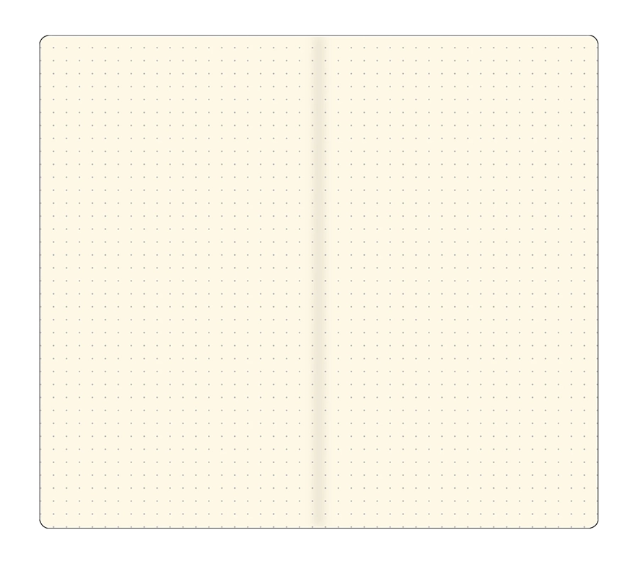 På insidan, 3 separata 60 sidors insatser. En linjerad, en prickig och en blank insats.