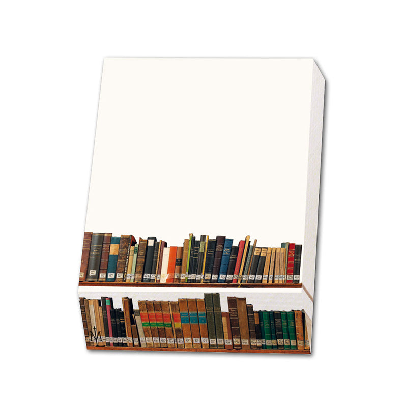 Block med Iris Snedskuret noteringsblock med en rad av böcker!