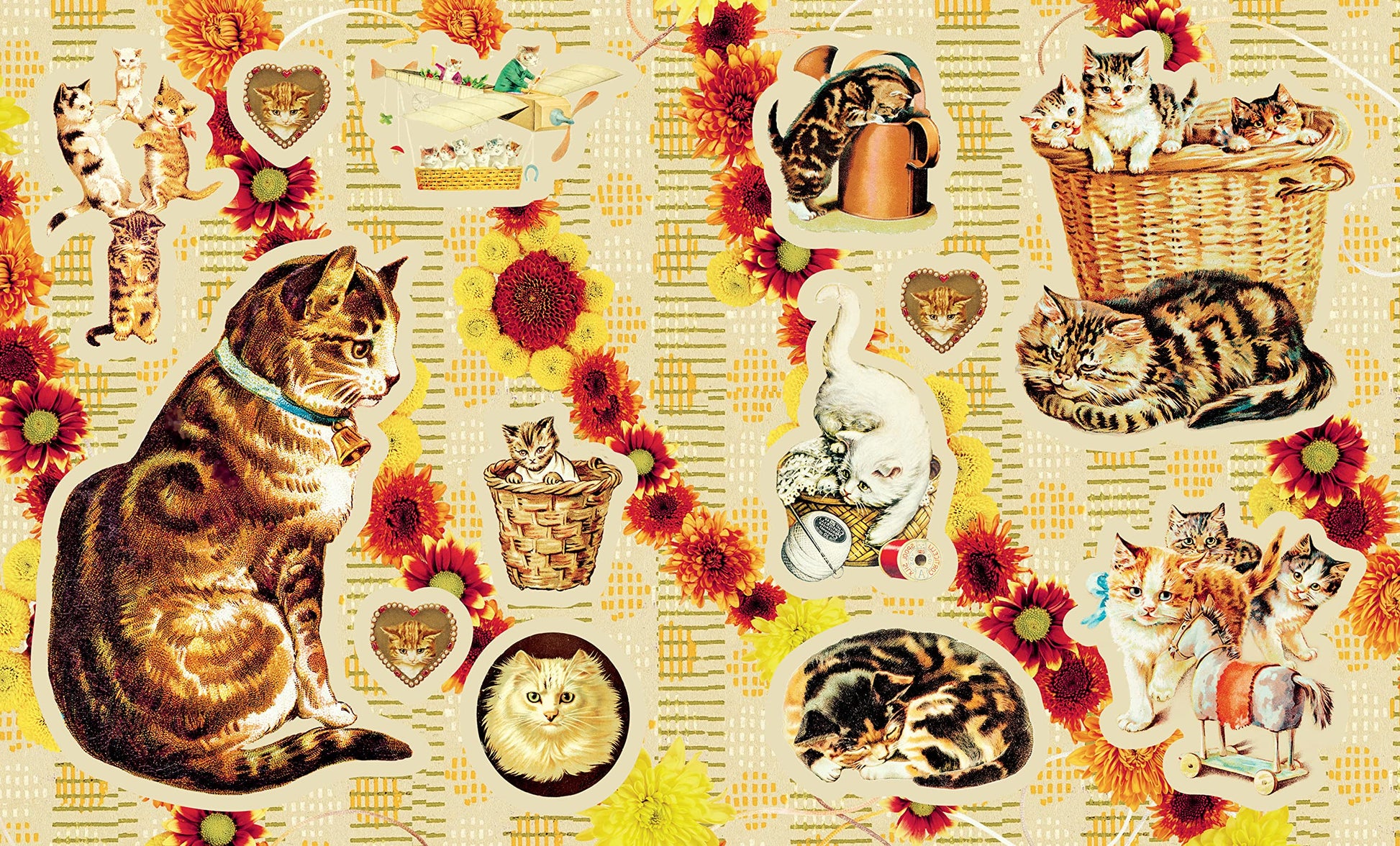 Designern Cynthia Harts Victorian Cats. 300 klistermärken med vackra bilder av charmiga katter, lekfulla katter, söta katter och mycket mer!