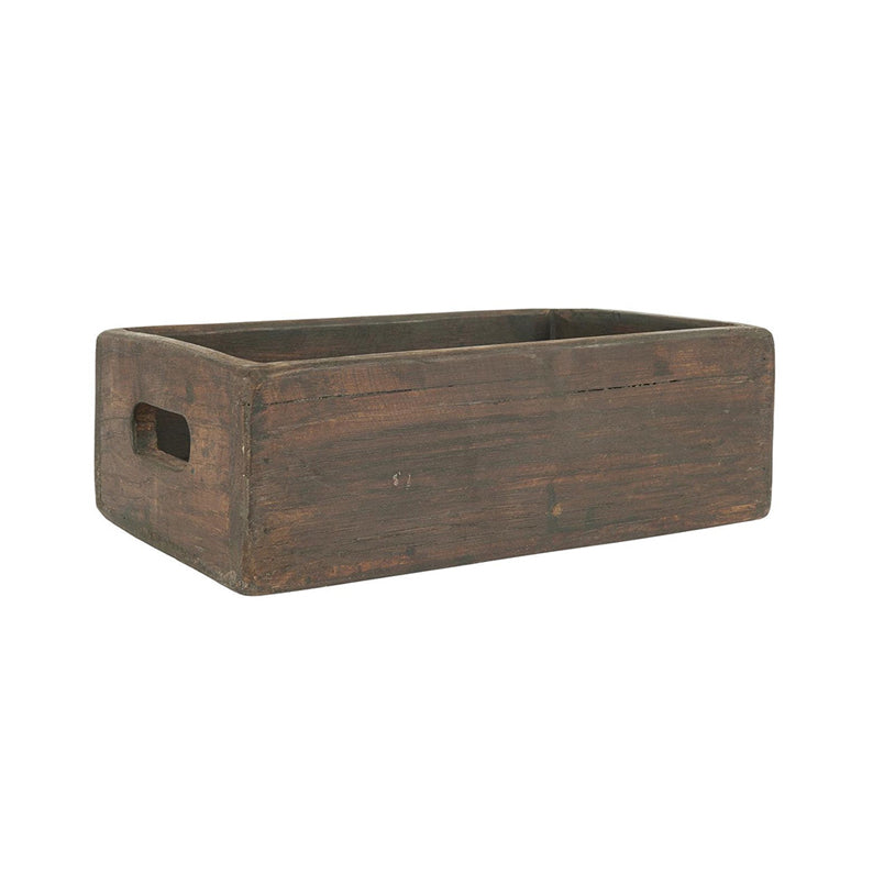 Trälåda är gjord an indiskt återanvänt trä. Det kan vara knastar, repor osv. i träet och trä sorterna kan variera.