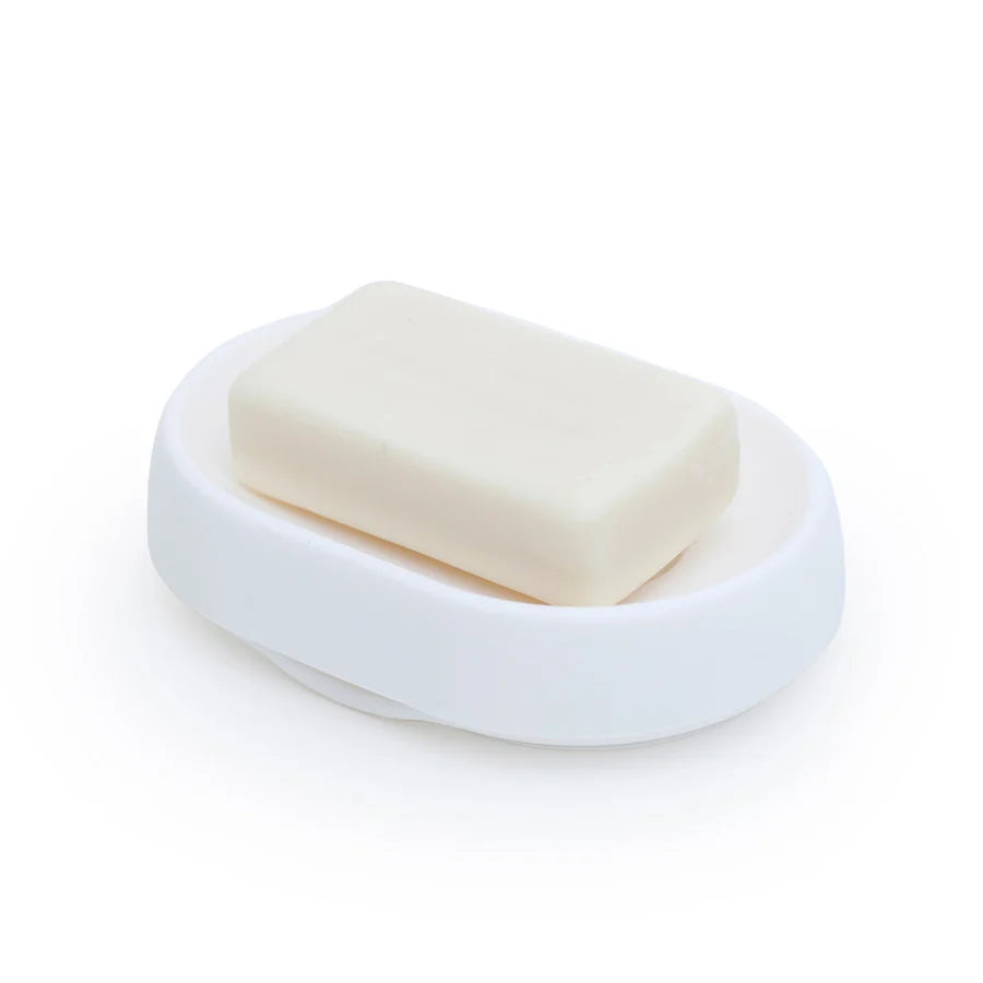 Den håller tvålen extra torr genom att den är tvådelad. Tvålen vilar på ett övre fat med hål i som låter vattnet försvinna ner i en undre del, som i sin tur tömmer sig själv ner i handfatet via en pip på sidan.