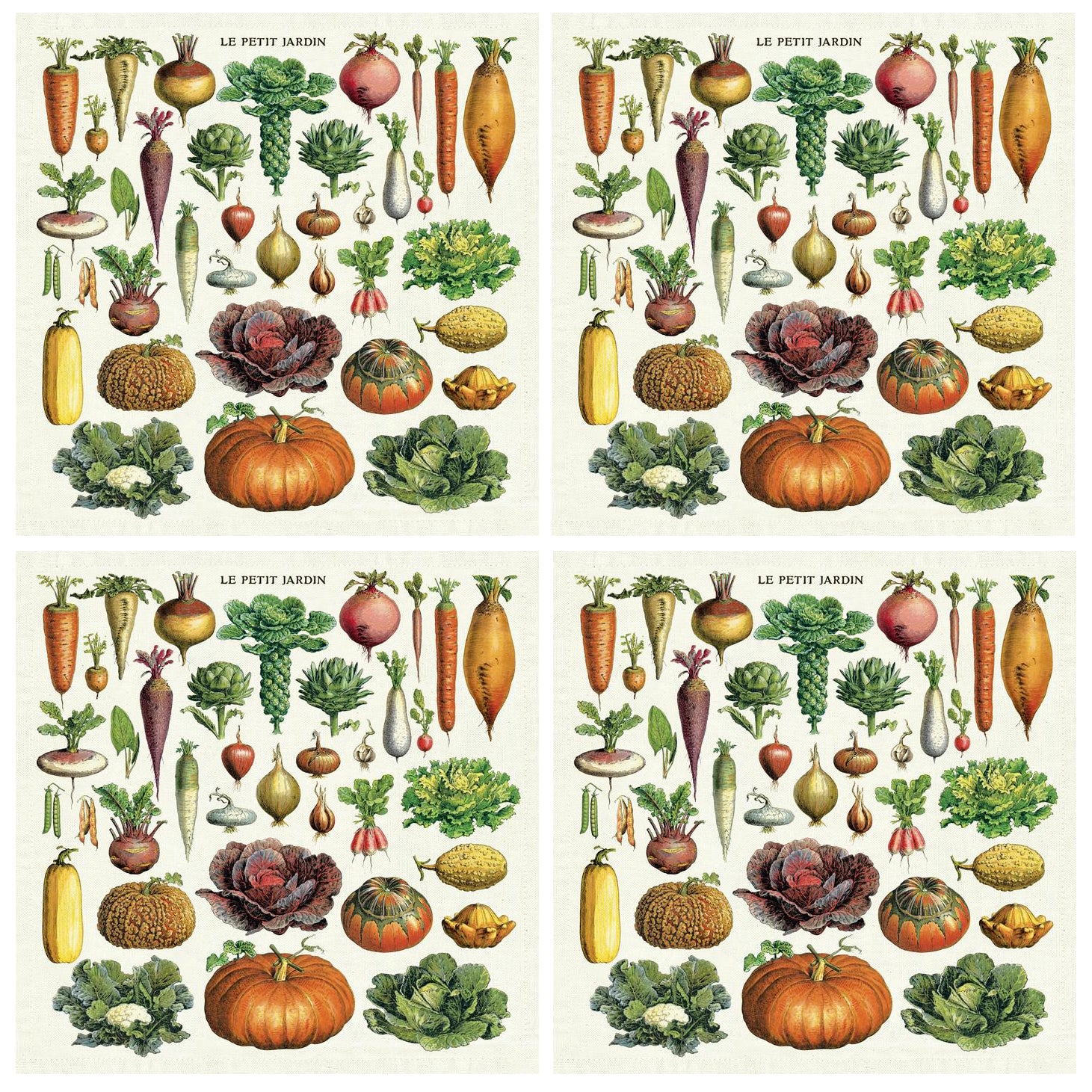 4 st tygservetter med motiv av Jardin, Trädgårdsgrönsaker.
